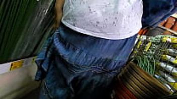 Upskirt with hair at the store