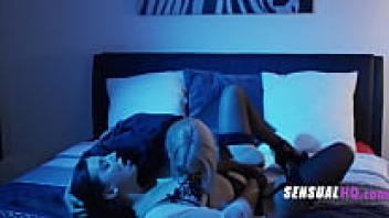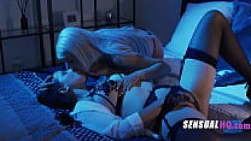 Busty Brunette in Lingerie Is Seduced by a Blonde MILF