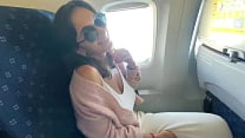 While on vacation with her partner, the busty stewardess cummed hard on the airplane restroom at 10,000 meters above sea level.