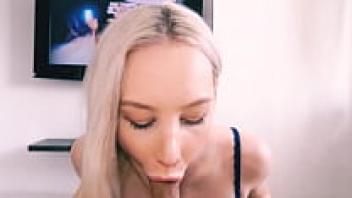 Amateur Blonde Babe with a homemade blowjob and come in her mouth