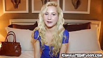 Cayla, a blonde teen, is fingering her tight pussy.