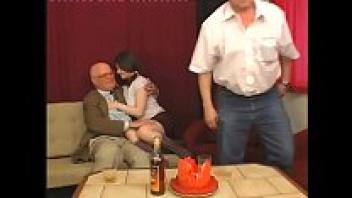 European girl rides old father-in-law's cock