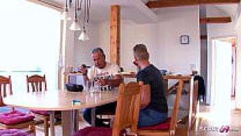 At the First MMF Threesome Sex with Big Dick Boy, the elderly grandmother and her spouse