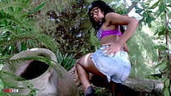Asking her stepbrother to lubricate her, the attractive black stepsister Ebony porn