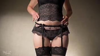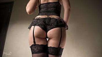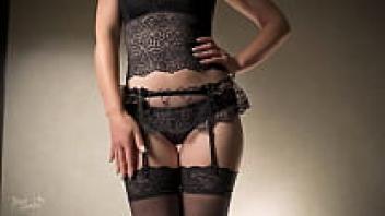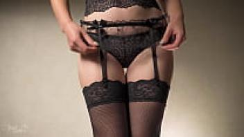 An amateur teases her teenage camel toe while wearing stockings and adorable underwear.