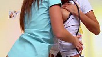 Naturally Large Titted Lesbians Wearing Stockings and Garter Belts Fingering and Licking in Costumes for Medical Cosplay