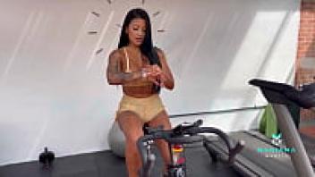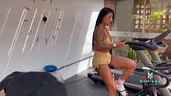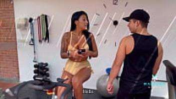 Mariana Martix can't stop staring at her neighbor Logan Salamanca's enormous cock at the gym. Footjob