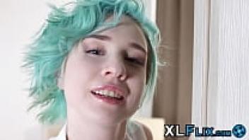 Teenage Emo puts her cock inside her butt in a missionary pose.