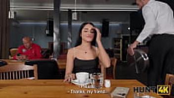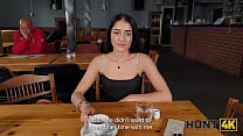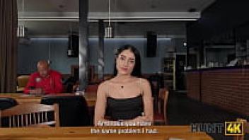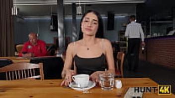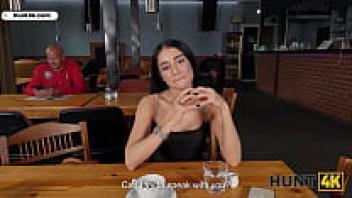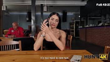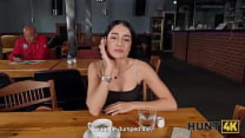 HUNT4K. Although the high-heeled teen was hesitant to speak, he was not afraid to ride and suck a large Hunter's cock in the toilet.