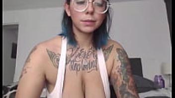Teen with a big round ass rubbing her pussy! Tattoos and perky tits.