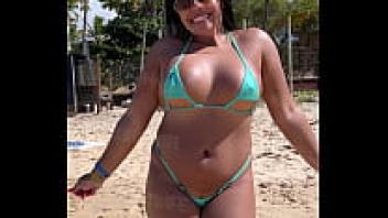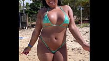 Come witness how naughty I looked on the public beach in this mini bikini, my darling!