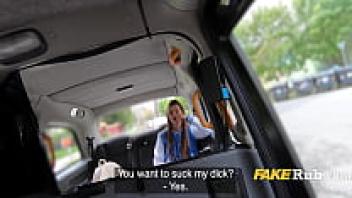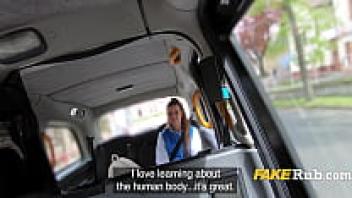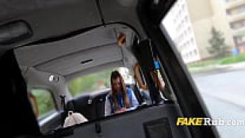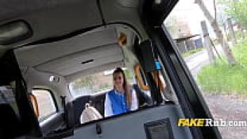 In the taxi, a flawless girl with flawless skin releases her breasts.