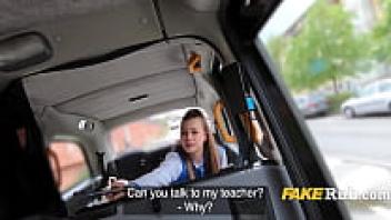 Adorable Teen Passenger Who Adores the Taxi Guy Outside and Has a Pink Pussy