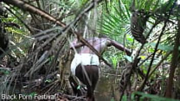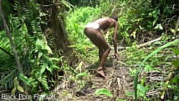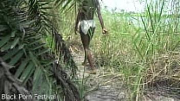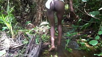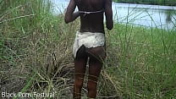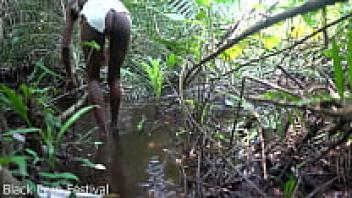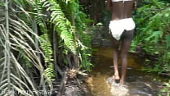A slim Zulu beauty with flawless tits is being adored while taking a river bath.