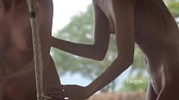 Brandi Mae and Shawn Fox engage in nude wrestling, with the loser taking cock.