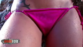 At the beach, a gorgeous Latina bikini bitch is sucking and making love.