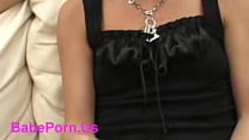 French babe in a black satin dress, red garter belt, black satin panties, red velvet stockings, heels, blowjob, and dirty talk in 1583 (02)