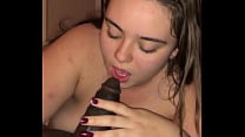 Sucking her stepson's cock while she is a hot stepmother