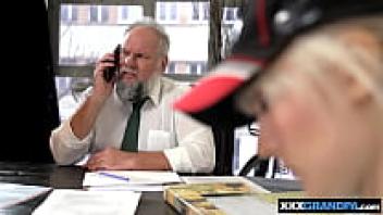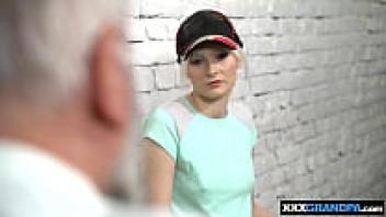 Miss Melissa, a gorgeous blonde girl, gives a pervert grandfather her brand-new pussy.