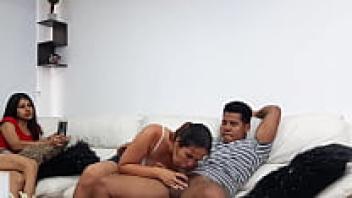 The girl in the miniskirt makes him CUM by teasing him with her large white ass.