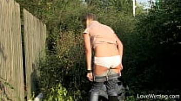 I'm outdoors smoking and urinating in my pink underwear.