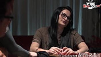 The amateur threesome FFM casting is done by the wife of a German huge natural tits.