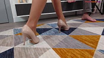 As a result of Max's affection for Anabel, she ends up with cum all over her tan pantyhose feet.