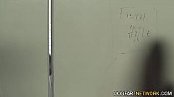 Gloryhole: Busty Natalie Attempts Interracial Intercourse