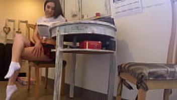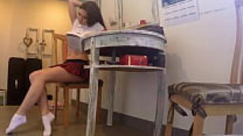 The teacher is in love with a pretty girl wearing a skirt and no underwear.