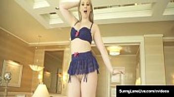 Sunny Lane, the Hazel-Eyed Babe, adores Dildo on Table Top and is a jerk!