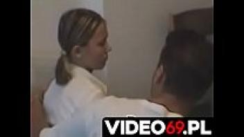 Polish porn: A youthful girl wearing spectacles is adored by an elderly plumber