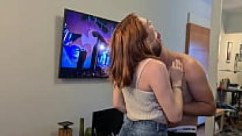 An adorable couple exchange between the redhead with the pink pussy and the brunette with the hairy pussy results from a game between friends.