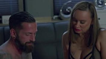 The lustful and busty brunette and blonde kiss passionately before the intense anal foursome begins.