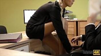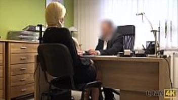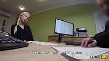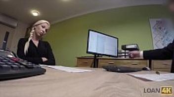 A bank clerk who is eager to see his clients' enormous fake tits is LOAN4K.