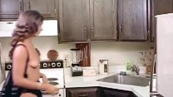 In the kitchen, a hot, mature German vintage seduces a worker.