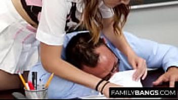 FamilyBangs.com ⭐ Nickey Huntsman, Kurt Lockwood, and a Pigtails student lady wake up the exhausted professor.