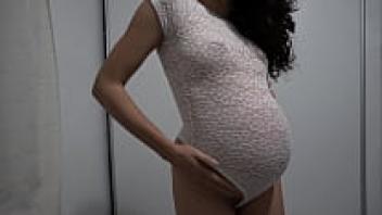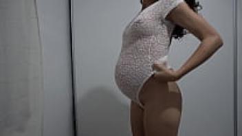 Trying on gorgeous lingerie as a pregnant Latina MILF