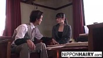 A Japanese office chick is loved and has her hairy pussy toyed.