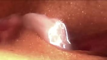 Creampie pussy and close-up of the stepmother's upskirt and large dick stepson
