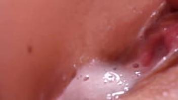 Close-up of a hairy, pussy schoolgirl wearing a stepdad bid cock creampie