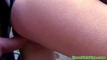 In order for her stepfather to jam his large cock into her wide opening, the young brunette widens her ass.