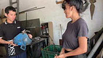 A gorgeous Latina's brother milks her