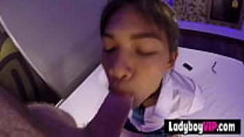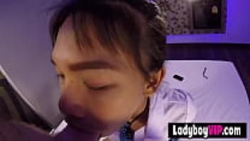 POV blowjob of an Asian ladyboy wearing a nice uniform