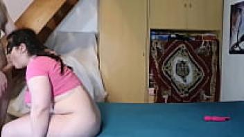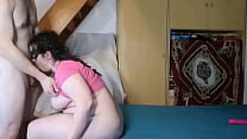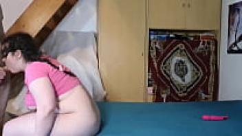 A sloppy blowjob performed by HD, the chubby stepdaughter