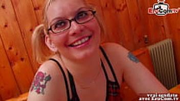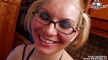 In the kitchen, the plump French blonde next door gets anal.