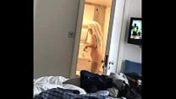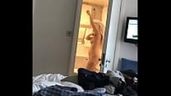In the shower, an amateur MILF (voyeur)