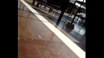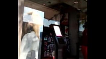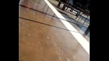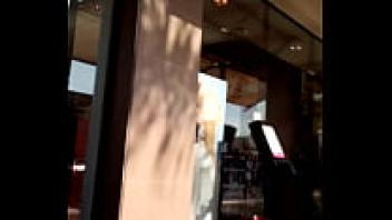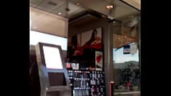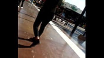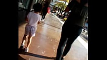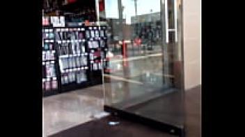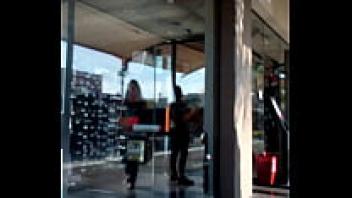 Voyeur. A female puts an anal plug into a gorgeous ass in a public shopping mall. Fetish.