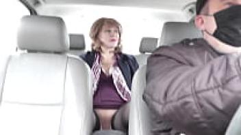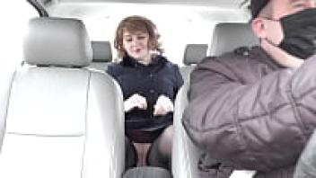 under a skirt without underwear in public. A hot blonde taxi driver takes passengers in the back seat of the vehicle. Milf Frina, who neglected to put on underwear