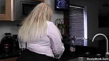 Blond, busty secretary with cock riding and blowjob