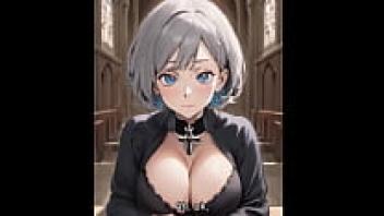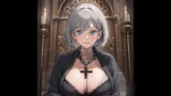 There is a young guy who is a virgin having his very first sexual encounter with an older mother Nun at the church (AI-Hentai/Cartoon).